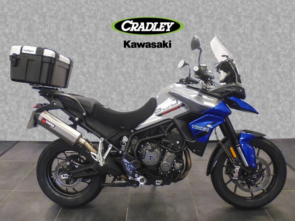 2021 Triumph Tiger 850 Sport. First registered 04/002/2021. 2 owners. 13966 miles. Datataged. 2 dealer service stamps and 3 home services recorded in the book. Comes with a Triumph quick shifter, Triumph leather pannier, paddock stand bobbins, rear brake pedal extension, R & G radiator guards, grip puppies, SW Motech tankbag ring, Wind Rider seat cover, Scorpion exhaust, and Triumph top box. Just serviced by us. Will come with a new MOT